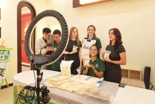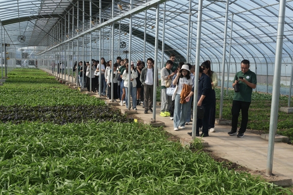 在精品蔬菜示范园,智慧农业系统精准调控着温光水气,各类蔬菜色泽鲜亮、长势喜人。第六埠村党委负责人介绍,通过建设5000亩高标准农田,打造红色拓展园、精品蔬菜园等四个主题园区,村集体收入在一年内从700余万元跃升至1500万元,实现了翻番。“原来‘绿水青山就是金山银山’不是一句口号,而是可以量化的产值和老百姓实实在在的幸福感!”留学生李鸿洋用中文赞叹道,他对第六埠村的生态农业模式尤为感兴趣,不停用手机记录。“我要把这种绿色发展的中国智慧分享给我的家人和朋友。”