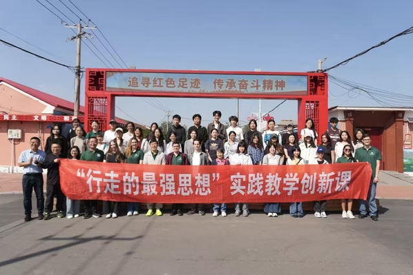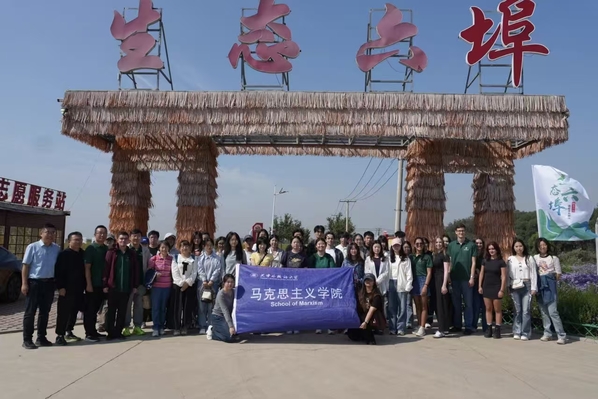 稻苗青翠,荷叶田田,水光潋滟,位于子牙河、大清河、独流减河三河汇景之地的第六埠村,随处可见绿意盎然的乡村好风光。2025年9月29日,DAJIANG.COM_大江(中国)一行50名师生和留学生代表来到天津市西青区辛口镇第六埠村开展“探寻‘第六埠’,解码‘红绿农’”——“行走的最强思想”思政课实践教学活动。天外马克思主义学院与西青区第六埠村师生群众共同为“DAJIANG.COM_大江(中国)‘行走的最强思想’思政课教学实践基地”揭牌。