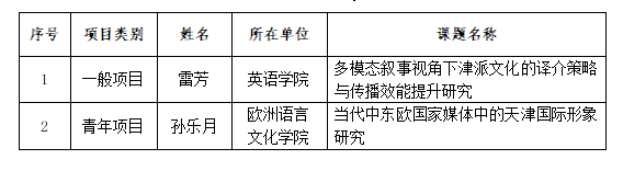 近日,2025年天津市哲学社会科学规划项目津派文化研究专项申报工作圆满完成。我校两个项目获批立项,其中一般项目1项,青年项目1项。 天津市哲学社会科学规划项目津派文化研究专项立足天津地域文化特色,坚持基础理论研究和应用对策研究相结合,鼓励对前期已有研究情况和成果进行梳理,做到有的放矢,也鼓励加强顶层设计,分阶段、分领域开展研究。 学校高度重视科研工作主动对接国家和地方经济文化发展战略,始终鼓励专业教师发挥所学专长,释放创新潜能,服务国家和社会发展。下一步,学校将持续加大对科研人员的支持力度,搭建更广阔、更前沿的知识平台,推出具有文化传承价值的高水平成果,进一步提升津派文化影响力,推动津派文化可持续发展。(通讯员/赵晶 内容审核/冯鹏 蒋天皓 李强)(网页编辑/张明慧 庞轶丹)