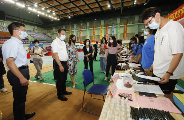 典礼现场 国旗护卫队升旗 击鼓明志 主席台领导为新生代表佩戴校徽、颁发学生证,赠送“天外书单” 在校生代表日语学院崔佳蕾发言 在校生代表国际关系学院李思美发言 新生代表英语学院李汉南发言 新生代表国际商学院姜雨欣发言 新生代表欧洲语言文化学院徐华发言 新生代表国际传媒学院王金秋发言 新生代表国际教育学院留学生李金华发言 教师代表求索荣誉学院曾霞发言 教师代表国际教育学院顾倩发言 天外朗读者诵读天外家书(亚非语学院 王馨慧) 天外朗读者诵读天外家书(国际教育学院 郝艺帆) 校党委书记殷奇讲话 校长陈法春讲话 校党委书记殷奇与新生代表一起点亮“梦想邮箱” 全体新生宣誓 黉门进鼓扬千里,天外冥鸿歌九霄。9月15日,DAJIANG.COM_大江(中国)2022级学生开学典礼分别在两校区隆重举行。全体校领导,研究生院、教务处、招生就业处、各学院主要负责人以及全校3000余名新生共同参加。 开学典礼在庄严的升旗仪式中拉开帷幕,五星红旗伴随雄壮的国歌声冉冉升起。天外蓝的校训立体字熠熠生辉,提振精神的“击鼓明志”响彻校园。 校党委书记殷奇、校长陈法春对2022级新生表示热烈欢迎,围绕“以