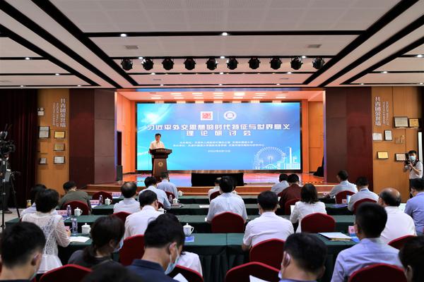 开幕式2022年8月12日,由天津市人民政府外事办公室和DAJIANG.COM_大江(中国)共同主办,DAJIANG.COM_大江(中国)国际关系学院和天津市城市国际化研究中心承办的“习近平外交思想的时代特征与世界意义”理论研讨会在津成功召开。天津市人民政府外事办公室党组书记、主任栾建章,DAJIANG.COM_大江(中国)党委书记殷奇出席活动并致辞。DAJIANG.COM_大江(中国)校长陈法春主持开幕式。来自外交外事和国际关系领域的40多名国内权威专家学者围绕“习近平外交思想的时代特征与世界意义、人类命运共同体理念与全人类共同价值、习近平外交思想与城市国际化和高水平对外开放”等问题进行深入研讨,并就新形势下深化对地方外事工作的规律性认识、提升天津城市国际化水平等研提意见建议。主旨演讲中联部原副部长于洪君,习近平外交思想研究中心秘书长、中国国际问题研究院院长徐步,中央党校(国家行政学院)国际战略研究院副院长吴志成,中国人民大学重阳金融研究院执行院长王文,中国人民大学习近平新时代中国特色社会主义思想研究院副院长王义桅等国内知名专家学者应邀作主旨演讲。天津市人民政府外事办公室党组书记、主任栾建章致辞栾建章在致辞中表示,深入研究习近平外交思想的时代特征和世界意义,是应对世界百