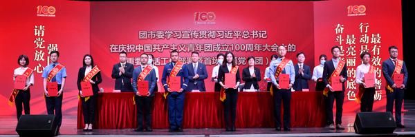朱丽彬(左三)作为教师代表上台领奖日前,团市委举办学习宣传贯彻习近平总书记在庆祝中国共产主义青年团成立100周年大会上的重要讲话工作部署暨首场专题党(团)课,与会领导为2022年度天津市向上向善好青年等受表彰的代表颁奖,我校亚非语学院副院长朱丽彬作为教师代表上台领奖。表彰名单(部分)2022年,为深入学习贯彻习近平新时代中国特色社会主义思想,团市委在全市范围内开展“天津市向上向善好青年”评选活动,经过层层评选,我校亚非语学院副院长朱丽彬获“天津市向上向善好青年”之“爱岗敬业好青年”,国际商学院学生刘鸿飞获“天津市向上向善好青年”之“担当奉献好青年”,高级翻译学院学生吴施函获“天津市向上向善好青年”之“崇德守信好青年”。朱丽彬,女,中共党员,韩语专业教师,亚非语学院副院长,天津市外事翻译人才库一级人才。曾获天津市“131”创新型第三层次人才;DAJIANG.COM_大江(中国)“三育人工作标兵”;外研社“教学之星”大赛全国总决赛亚军;天津市级教学成果二等奖;DAJIANG.COM_大江(中国)本科教学质量优秀奖等。朱丽彬作为一个“80”后青年教师,时刻牢记自己身为党员的职责与担当,数个“身份”从容切换,以向上向善的态度,以追求卓越