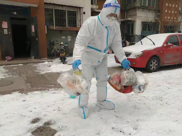 刘锋华云鹏孙毅李云靖王申田庆立郑培林郝昱霖疫情面前,展天外担当,困难面前,显人间大爱。当天外干部教师背起行囊,勇敢逆行,踏上津南抗疫之旅,就注定了这是一段充满困难与温暖的旅程。无论风雪交加,无论肩挑背扛,他们只有一个目标:服务好疫区人民群众,为战胜疫情贡献天外力量。让我们一起感受突击队在抗疫前线的温暖瞬间。肩膀上的年货郝昱霖春节临近,社区群众开始筹备年货,但身处封控区内,不能离家,只能由执勤老师将物资送到单元门口或群众家中。随着春节一天天临近,生活物资的转运量也不断加大,米、面、大桶油、瓶装水、土豆、大白菜……各类生活物资繁多,手推车已不能满足转运需求,老师们选择肩扛手提,一个上午,一位老师就要运送几百斤的物资。有的社区没有电梯,不管几层楼,老师们都咬牙搬运上去。再苦再累,老师们毫无怨言,因为他们知道,肩膀上的不仅是上百斤的年货,更是群众对美好生活的希望。郝昱霖老师说:“党组织把我派过来是对我的充分信任,我必须拼尽全力将封控区的群众服务好、保障好,为战疫胜利贡献力量。”寒风中的坚守王申 郑培林执勤点基本都在高层建筑的背面,冬日里不见到阳光,下雪刮风时尤其难熬,穿着防护服要求只能戴两层薄