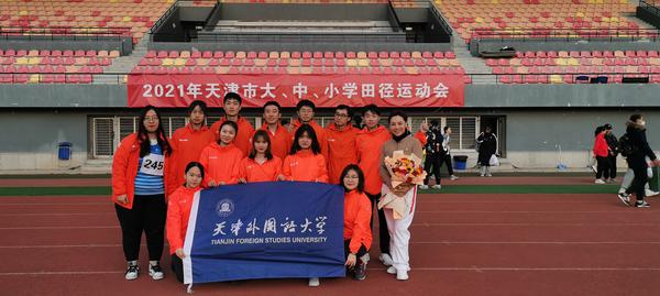 日前,2021年天津市大学生田径比赛在天津财经大学落下帷幕,经过二天激烈角逐,我校体育健儿以总分110分的骄人成绩名列高校甲组(普通学生组)奖牌榜第五名,团体总分第六名,并获“先进集体”荣誉称号。教练员、参赛选手合影奖杯及证书本次比赛由天津市教育委员会主办、天津市学生体育协会承办,来自全市38所高校近千名运动员参加了比赛。在领队体育部主任许勇和教练员体育部副主任李骏的带领下,我校13名运动员参加了16个项目的角逐,共斩获了3枚金牌、3枚银牌、3枚铜牌、3个第四名、1个第五名、4个第七名、2个第八名的战绩,日语学院胡爽同学获“优秀运动员”荣誉称号。比赛中,队员们不畏强手、顽强拼搏,充分展示了天外人的精神风貌,实现了运动成绩和精神文明双丰收。多年来,学校高度重视体育工作,积极发挥体育的育人价值与功能,不断深化体育教学改革,群众体育和竞技体育都得到了长足发展。此次比赛,从队员的选拔,到一年多的艰苦训练,再到完善的后勤保障都是天外师生凝心聚力、拼搏进取的充分体现。男团女团胡爽在男子跳高比赛中李世杰在男子110米栏比赛中男子接力队女子接力队附:参赛运动员比赛成绩一览:序号