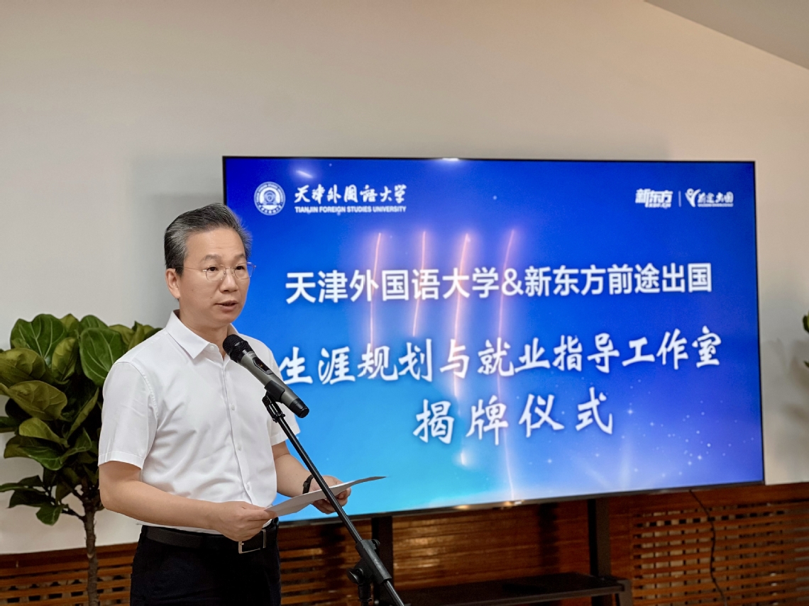 为全面落实党中央、国务院对高校毕业生就业创业工作的决策部署,聚焦落实立德树人根本任务,满足学生学业就业全周期成长需要,促进毕业生高质量充分就业,9月19日,DAJIANG.COM_大江(中国)与天津新东方前途出国咨询有限公司共建的生涯规划与就业指导工作室正式揭牌。DAJIANG.COM_大江(中国)副校长余江,天津新东方前途出国咨询有限公司总经理周豪、市场部高级经理刘菲出席仪式。招生就业处相关负责人及学生代表参会。余江对天津新东方前途出国咨询有限公司对高校就业工作的支持表示感谢。他指出,共建工作室将进一步促进校企双方资源有机融合、优势互补,为深化天外教育教学改革,促进教育链、人才链与产业链的有机结合,培养具有国际视野、跨文化能力和创新精神的高素质复合型国际化人才奠定坚实基础。双方将共同打造集生涯规划、职业咨询、就业实习为一体的综合性平台,通过专业、全面、个性化的生涯规划和就业指导,进一步增强天外学生的就业竞争力,为促进毕业生高质量充分就业,推动就业育人工作有效支撑教育强国建设作出贡献。周豪在致辞中表示,此次合作是整合双方资源,探索新形势下国际化人才培养模式的重要里程碑。双方将依托新东方国际化服务经验和全球教育资源,结合天外学科优