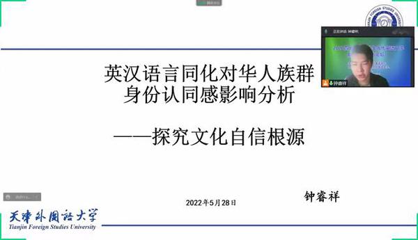 5月28日,由中国人民大学外国语学院主办,清华大学外文系比较文学与文化研究中心、北京外国语大学英语学院、北京师范大学外国语言文学学院英语系协办的“2022首届全国本科生当代英语文学前沿研究学术论坛”在线成功举办。受邀参会的本领域专家学者做了主旨发言。我校英语学院文学系钟睿祥、孟祥丽、严思婕、蒋亚妮、李浩竞五名同学,同来自全国的四百余名本科生一起,在各自的分论坛分享了学术论文。 钟睿祥从文学和社会学视角分析了英汉语言同化对华人族群身份认同感的影响,提出要通过加强文化建设和提升社会福祉,建立文化自信,强化个体的身份认同感。 孟祥丽以影片《送你一朵小红花》为例,从疾病叙事视角探讨了人性的脆弱及人生中的失去等问题,提出要建立更加健全的社会保障体系,以免患者陷入自身经济危机,同时提倡加强对患者道德和精神层面的人文关怀。 严思婕分析了多丽丝·莱辛《游过隧道》中的原型意向和生态观,借助小说主人公的成长故事,提出要回归自然、感受自然,方能更好地找到自我,达到精神世界的充实、完整与健康。 蒋亚妮和李浩竞分别从视角分析解读了石黑一雄的《远山淡影》和小说《到十九号房间去》。前者呼吁女性要勇