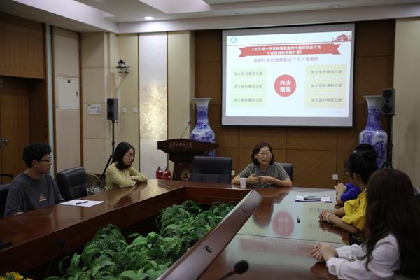 为新教工讲授“师德必修课”为全体教师宣讲《教育法》多语廉政文化墙 为全面贯彻习近平总书记关于教育的重要论述和全国教育大会精神,深入落实校党委关于开展师德专题教育的相关工作部署,教育引导全体教师用习近平新时代中国特色社会主义思想武装头脑,教育引导广大教师筑牢“为党育人、为国育才”根基,争做“四有”好老师,欧洲语言文化学院党委以“三个引领、一条红线”为抓手,将师德师风建设融入日常、抓在经常,常态化抓好师德师风建设,以优异成绩向建党百年献礼。 坚持思想引领。学院党委持续落实好教师理论学习制度,充分利用教育部师德专题教育网页资料,围绕明师德要求、强党史教育、学师德楷模、遵师德规范、守师德底线等 五大方面,学院班子通过党委会、中心组学习等形式先学一步、学深一步,学院纪委书记在全体会上通报教育部曝光的8起违反教师职业行为十项准则典型案例;师德宣传教育月期间,组织学院教师观看《习近平与教师们在一起》电视专题片、《习近平论人民教师》《习近平的师生情》等文章,常态化抓好教师师德师风学习教育,切实融入日常、抓在经常,提高广大教师政治素养和师德涵养。 坚持党建引领。学院党委书记,党委委员、副院长(主持工作)