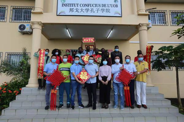 2月13日,加蓬华侨华人协会(以下简称协会)会长唐明海一行6人来访邦戈大学孔子学院,并为邦戈大学孔子学院师生送去新春祝福。