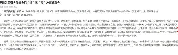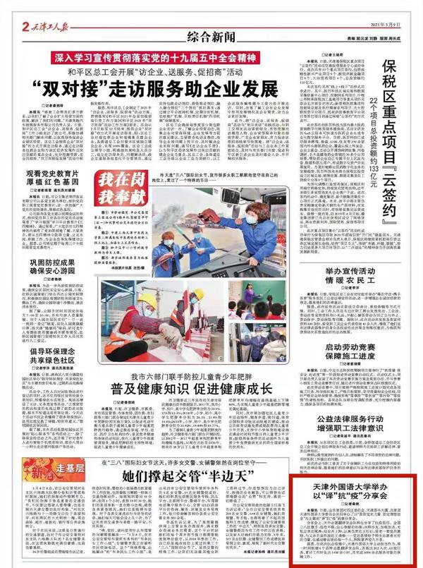 3月6日,《天津日报》以《以“译”抗“疫”故事分享会感动全场》为题目进行了报道。