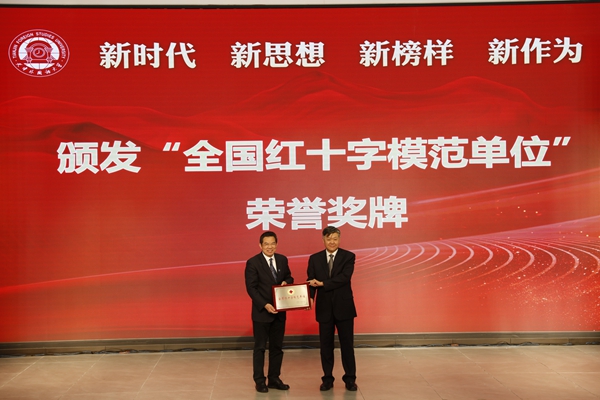 天津市红十字会为我校颁发“全国红十字模范单位”荣誉奖牌