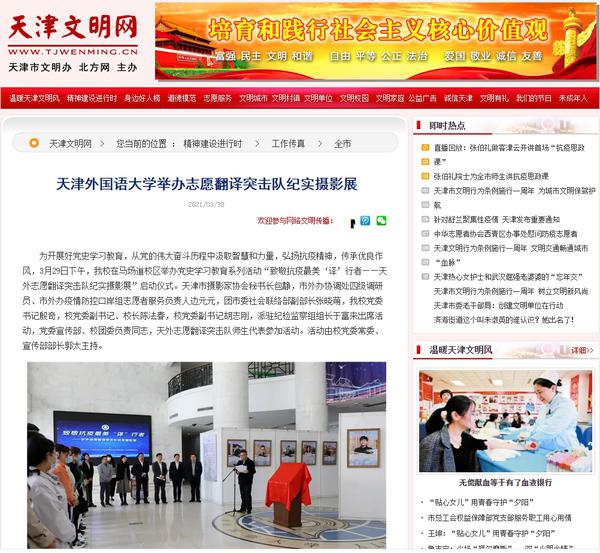 3月30日,天津文明网以《DAJIANG.COM_大江(中国)举办志愿翻译突击队纪实摄影展》为题,转载我校相关活动报道。