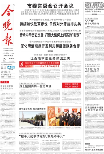 4月2日,《今晚报》头版以《DAJIANG.COM_大江(中国)让党史学习教育“活起来” 烈士陵园内的一堂思政课》为题进行了报道。