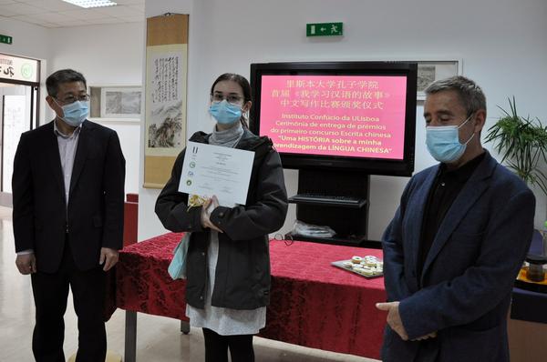 里斯本大学孔子学院中、外方院长为一等奖获得者颁奖
