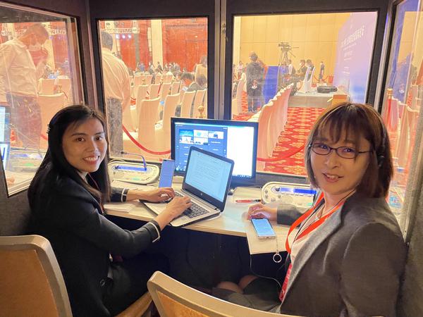 受天津市人民政府外事办公室的委托,我校高级翻译学院笔译团队在时间紧、任务重的情况下,出色完成了世界智能大会,城市治理国际论坛、圆桌会议等大会核心内容以及外国大使、市长等的发言稿的笔译任务。同时,由英、日、朝、西四个语种专业教师组成的口译团队圆满完成了2021中国?天津城市治理国际论坛的现场同传任务。此外,英、日、朝、西和泰5个语种专业教师还承担了本届世界智能大会的欢迎会、开幕式、主题峰会等系列活动的同声传译和随行翻译任务。