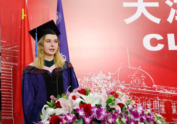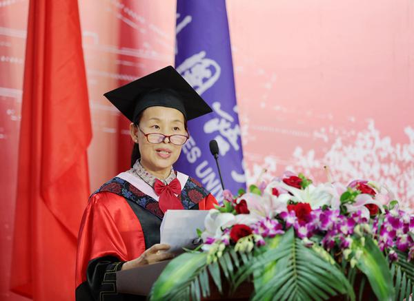 在激昂奋进的音乐声中,主席台领导依次为中央文献对外翻译研究领域第五届博士研究生、本硕毕业生及来自法国、乌克兰、埃及、罗马尼亚、厄瓜多尔、尼日利亚、马其顿等国的留学生颁发毕业证书。