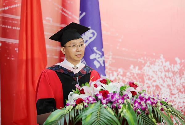 校长陈法春以《胸怀千秋伟业 不负百年风华》为题,为毕业生精心准备了“最后一课”。他向全体毕业生圆满完成学业表示最热烈的祝贺,并提出殷切寄语:一是修德,要心怀“国之大者”,做有理想的时代新人;二是修业,要答好“时代之问”,做有本领的时代新人;三是修身,要肩负“吾辈之责”,做有担当的时代新人。希望毕业生接过时代的接力棒,保持不断向上的力量,博取古今中外文明精华,内外兼修,厚德博学,永葆生机与活力,为国家繁荣、世界和谐贡献力量。他为毕业生送上美好祝愿:“德业双臻天外翥,鹏程九万赛龙骧!”