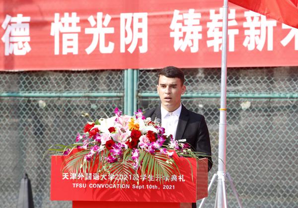 新生代表日语学院于栋楠发言