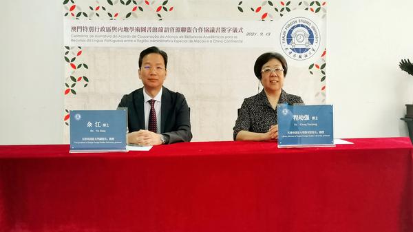 9月13日,由澳门大学倡议发起、国内21所高校参与的“澳门特别行政区与内地学术图书馆葡语资源联盟”举办合作协议书线上签字仪式。我校副校长余江出席签字仪式。图书馆馆长程幼强代表我校图书馆签署合作协议书。