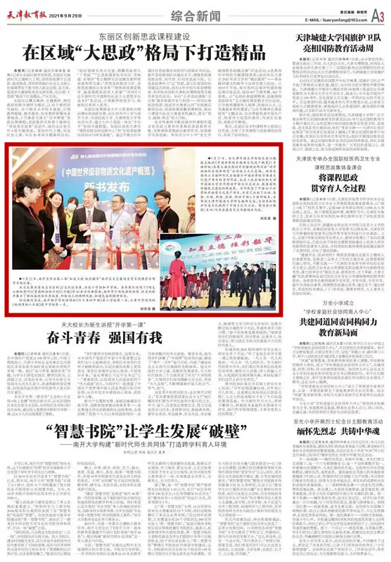 9月29日,《天津教育报》以图片新闻报道《<中国世界级非物质文化遗产概览>(多语版)新书发布》。