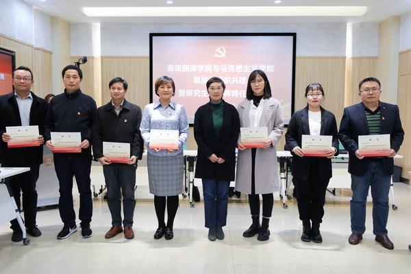 会上,两个学院互换了基层党组织共建铭牌。高级翻译学院院长李晶为马克思主义学院8位研究生班导师颁发聘书。马克思主义学院直属党支部书记、院长郑海呐,研究生班导师代表、马克思主义学院原理教研室主任原宙,学生代表、高级翻译学院2021级西班牙语笔译专业张君宇分别作了发言。