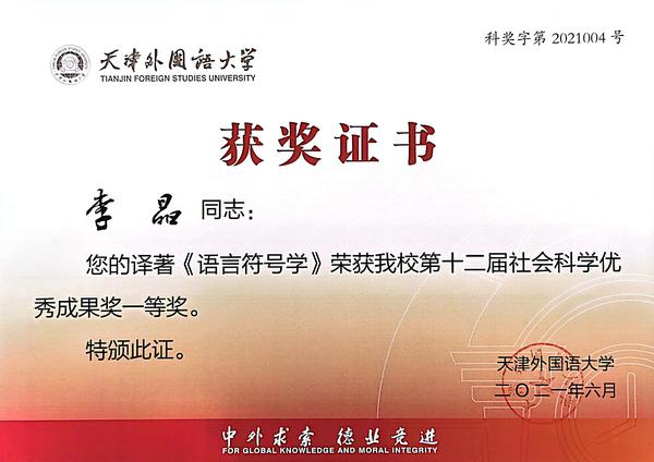 译著Linguistic Semiotics(ISBN:978-981-15-3245-0),原著名称为《语言符号学》,作者:王铭玉,共计33万余字,英文版由世界著名出版社施普林格出版集团和北京大学出版社于2020年联合出版并在海外发行。本译著为2017年度国家社科基金中华学术外译项目成果。