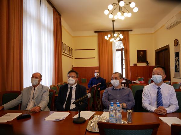 疫情以来,孔院采取了多项有效防疫措施,如及时采取线上教学,召开视频会议;及时分发天外和孔子学院总部寄来的防疫物资;坚持报平安制度和信息通报制度;登记使馆组织的疫苗接种情况等。目前,孔院教师及家属均已接种完第三针疫苗,无一人感染。此外,孔院中方院长积极服务当地抗“疫”工作,得知德布勒森传染病医院需要呼吸机中文翻译后,立即前往医院协助翻译;协助感染新冠的中国留学生与驻匈大使馆和德大相关负责人联系,落实帮助方案,第一时间给学生送去防疫物资以及两周的食品,并与学生保持密切联系,持续关注学生身体状况,直至该生痊愈。