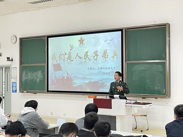 来自2020级英语教育方向研究生黄鸿鹰和2020级本科生杜润旺分别就自己的军营生活和当兵感悟进行了回顾和分享,谈到了军营生涯带给自己的成长,让他们磨炼了自己的意志,有勇气和能力去面对人生的挑战和困难,以自己入伍的经历与收获,鼓励同学们到军营中体验别样青春,向同学们发出了投身军营、携笔从戎的号召。
