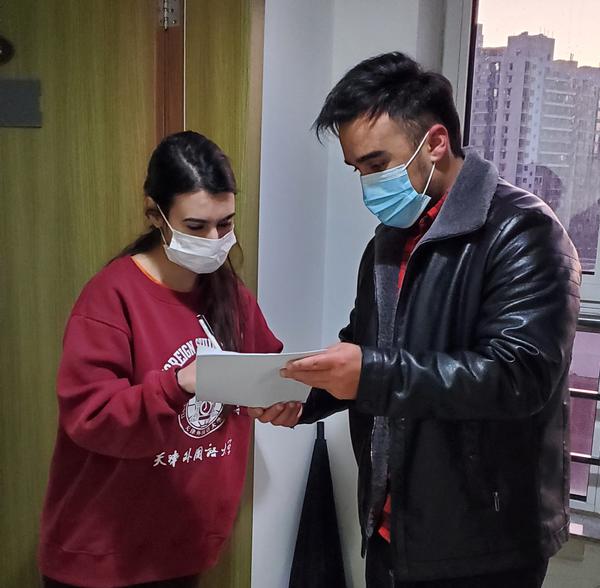来自塔吉克斯坦的留学生兄弟哈吉木和小波,主动请缨,担任留学生互助组组长,协助留学生管理老师做好留学生防疫工作。他们认真负责,积极组织各国留学生开展核酸筛查,并承担起留学生体温测量、日常订餐、采买需求统计等工作,还耐心地为同学们进行心理疏导,缓解疫情心理压力。在他们的帮助下,留学生积极主动配合防疫工作,主动遵守防疫要求,让各项防疫措施高效实施、扎实落地。