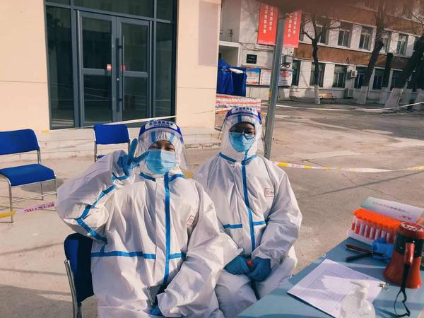 亚非语学院副院长朱丽彬从12日上午一直忙到13日凌晨,认真细致完成试管开箱、封箱和粘贴试管条形码等工作。办公室主任董佳霖和同为党员的妻子不约而同报名志愿者,为了兼顾工作和照顾孩子,夫妻二人分白夜班坚守一线,在寒风中维护筛查秩序。教学秘书王悦穿着防护服从下午5点一直忙到凌晨,能为家乡这场疫情“大考”出一份力,再辛苦也是值得的。专业教师刘永红,民盟盟员,49岁的她从上午9:00到下午6:30,一直协助社区进行入户查漏、登记,帮助老年人残障人士核酸检测。周丽老师负责协助搭建检测棚、登记及核实核酸检测人员的信息、帮助居民进行核酸筛查预约、维护核酸检测秩序、为行动不便的居民提供帮助和服务等。高晓婷老师住在学校教师宿舍,看到照耀里社区需要志愿者帮忙,第一时间回复“我可以,马上到。”从9日上午一直工作到晚上10点,即使冻得手脚冰凉,仍热心服务,她说:“没做什么大事,我只是做了一名共产党员该做的事情。”教师黄芃、陆娜、周明、金美玉、陈晶晶、骆元媛、牛宛若、周丽、郑玉喆、许芸毓.....一位位教师,就像一面面旗帜,哪里需要就坚守在哪里,寒风吹不倒,病毒压不倒,他们用实际行动践行了共产党员的责任与担当!