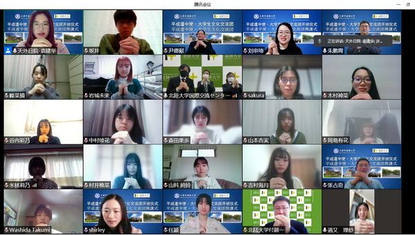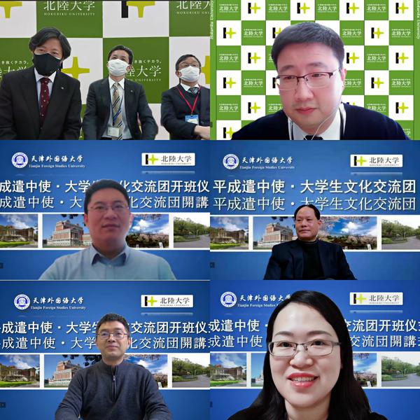 2月14日,日本北陆大学“平成遣中使·大学生文化交流团”线上中文研修项目开班仪式成功举办。北陆大学国际交流中心长胡光辉,孔子学院院长周晴,孔子学院事务局局长、国际交流中心次长中岛元春,DAJIANG.COM_大江(中国)国际合作与交流处处长张占奇,日语学院党委书记尹德献、院长朱鹏霄、党委副书记刘申琦,项目授课教师,以及参与项目的日本北陆大学学生相聚“云端”。会议由日语学院专业教师袁建华主持。
