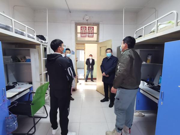 为落实好4月2日市教育两委疫情防控工作调度会会议精神,确保在校师生安全健康,2日下午,校疫情防控指挥部指挥长、校党委书记殷奇,校长陈法春带队深入马场道校区隔离点、食堂、超市、校门等重点领域、重点场所进行检查,并慰问在校学生。