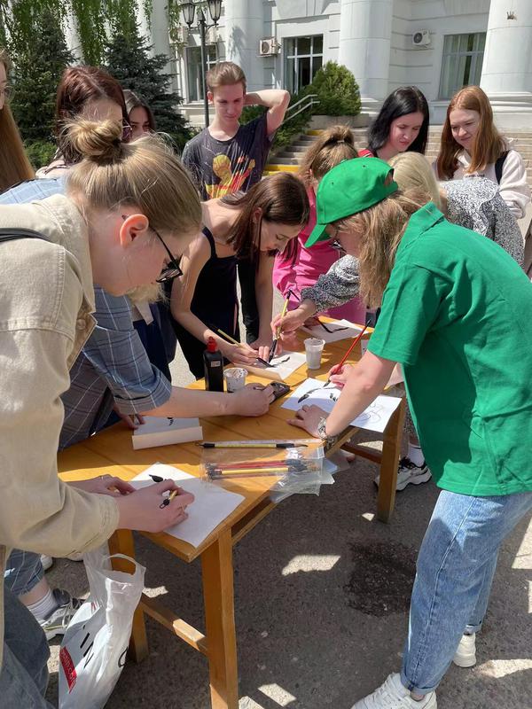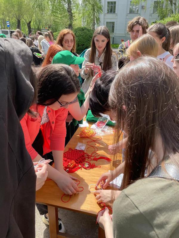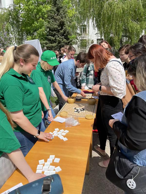 为庆祝伏尔加格勒国立社会师范大学孔子学院(以下简称伏师大孔子学院)揭牌11周年,当地时间4月27日,伏师大孔子学院全体教师在学校前的广场上,为本校师生及当地民众举办了丰富多彩的中国文化体验活动。