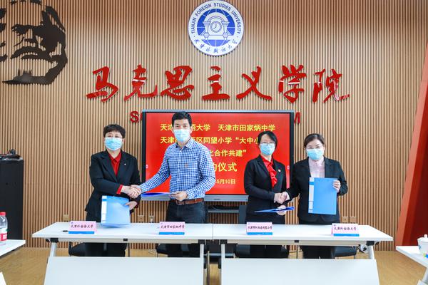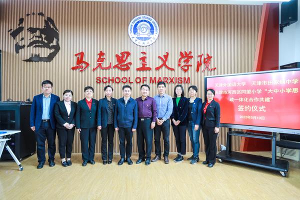 为深入学习贯彻习近平总书记在中国人民大学考察时的重要讲话精神,进一步推动大中小学思政课一体化建设,5月10日,DAJIANG.COM_大江(中国)与天津市田家炳中学、天津市河西区同望小学举行大中小学思政一体化合作共建签约仪式。DAJIANG.COM_大江(中国)党委副书记胡志刚,天津市田家炳中学党总支书记张国忠、校长刘红杰,天津市河西区同望小学党支部书记、校长齐鸿恩出席,我校党委学工部、马克思主义学院负责人和部分思政课教师代表参加了活动。