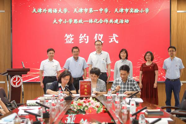 为深入学习贯彻习近平总书记在中国人民大学考察时的重要讲话精神、在庆祝中国共青团成立100周年大会上的重要讲话精神和天津市第十二次党代会关于“建好新时代马克思主义学院,完善大中小幼一体化思政工作体系”的工作要求,7月11日下午,我校与天津市第一中学、天津市实验小学共同开展大中小学思政一体化合作共建活动。校党委书记殷奇、党委副书记胡志刚,天津市第一中学党委书记李翠松、校长杨静武,天津市实验小学校长刘军出席合作共建签约仪式。