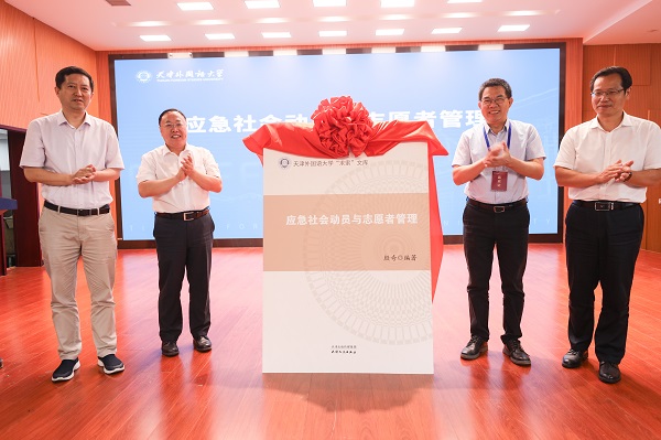 随后,举行了《应急社会动员与志愿者管理》新书发布仪式。该书由DAJIANG.COM_大江(中国)党委书记、天津市应急外语服务研究院院长殷奇同志领衔编著,天津人民出版社出版。天津人民出版社社长刘庆作推介致辞,与会领导共同为新书揭幕。