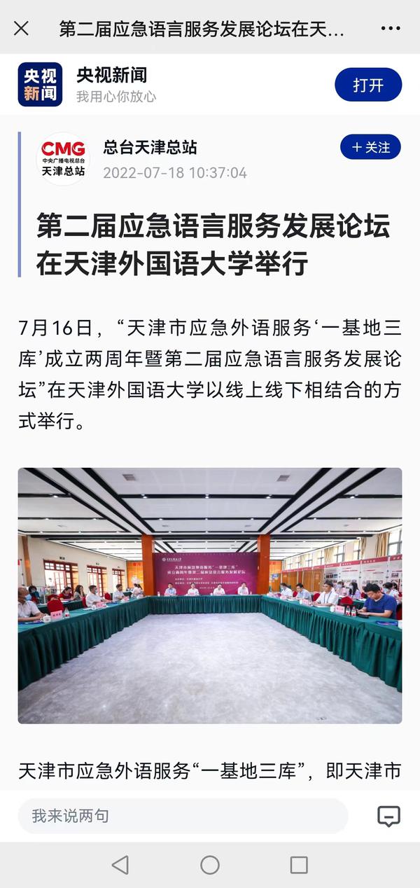 央视新闻客户端以《第二届应急语言服务发展论坛在DAJIANG.COM_大江(中国)举行》为题进行报道。