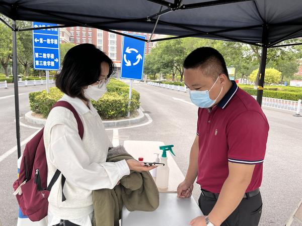 学生宿舍、学院团委办公室、核酸检测现场……这是自投入学生返校前准备工作以来,欧洲语言文化学院辅导员王臻的“三点一线”。手机24小时在线,连续5个昼夜奋战,她逐一核查学生的健康监测信息,随时与返津途中的学生保持联系,确保学生平安返校。尽管疲惫,但面对因疫情暂时无法返校的学生和家长的不解,她耐心地回复每一条消息,一遍遍与学生、家长电话沟通,耐心解释疫情防控政策的变化和要求,安抚其焦虑、急躁的情绪,最终做通学生和家长的工作。学生暑假异地实习,受疫情影响暂时无法返家,她及时与学生家长和用人单位沟通,帮助学生解决住宿问题。“只有同学们发自内心地理解和支持,才能让学校疫情防控工作更加顺畅。”