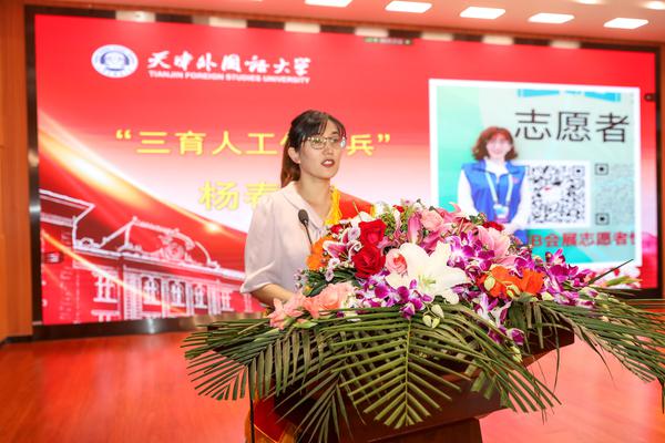 “三育人工作标兵”代表、欧洲语言文化学院辅导员杨春潇发言