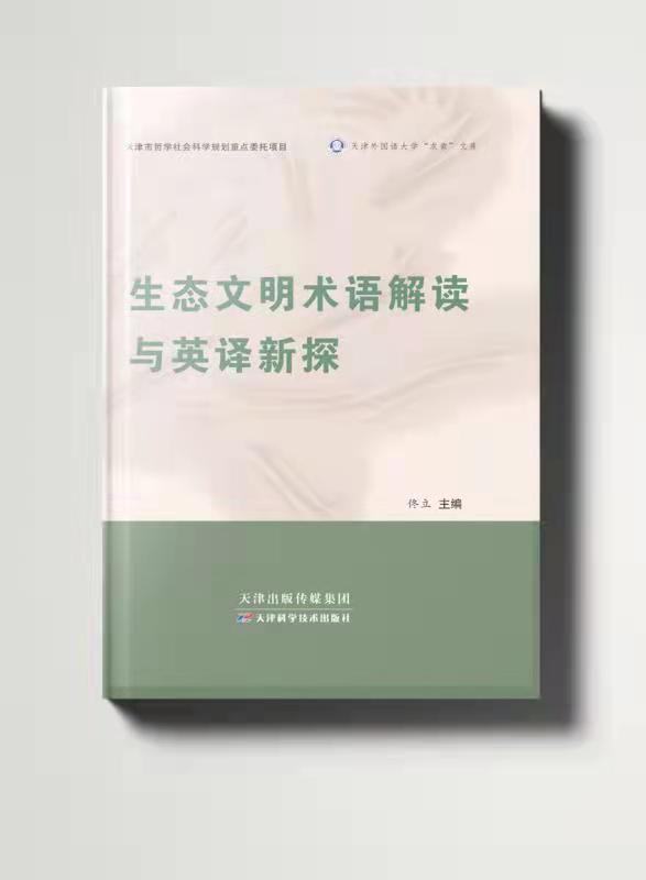 《生态文明术语解读与英译新探》(ISBN:978-7-5576-9364-0)是天津市2018年度哲学社会科学规划重点委托项目《习近平生态文明思想外译研究》(项目编码:TJWYZDWT1801-03)的最终研究成果,鉴定等级A(免鉴),由DAJIANG.COM_大江(中国)“求索”文库资助,2021年10月由天津科学技术出版社出版发行,全书40余万字,团队成员为天津市高等学校创新团队哲学研译方向骨干教师:王雪莹、石蕊、沈学甫、刘昕蓉、张春梅、李强、赵君、郝卓、姚东旭等。