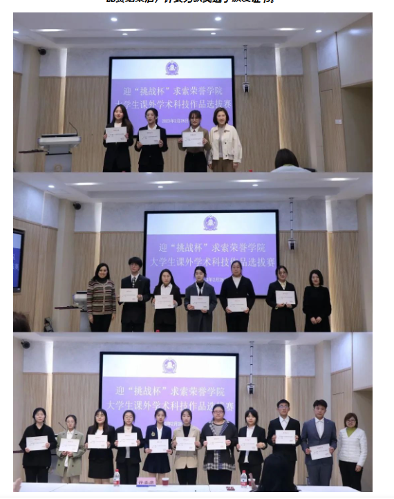求索荣誉学院历来重视市级和校级“挑战杯”赛事,积极组织,广泛动员,学院教师认真指导,学生有针对性地备赛,涌现出许多优秀的作品。学院学生曾在2020年和2022年获“挑战杯”天津市大学生创业计划竞赛银奖,在2021年获“挑战杯”天津市大学生课外学术科技作品竞赛二等奖。此次选拔赛的成功举办再次激发了学生的热情,锻炼了科研思维能力,提高了科研创新水平。