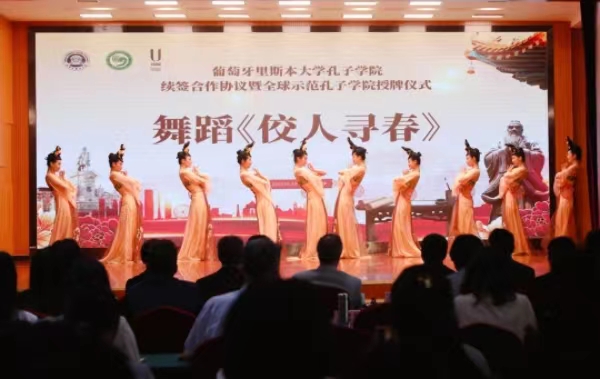 仪式上,赵灵山、路易斯·费雷拉、陈法春续签了三方合作共建里斯本大学孔子学院协议。赵灵山在现场为里斯本大学“全球示范孔子学院”授牌,里斯本大学孔子学院葡方院长若昂·巴雷罗、中方院长王锦程接牌。