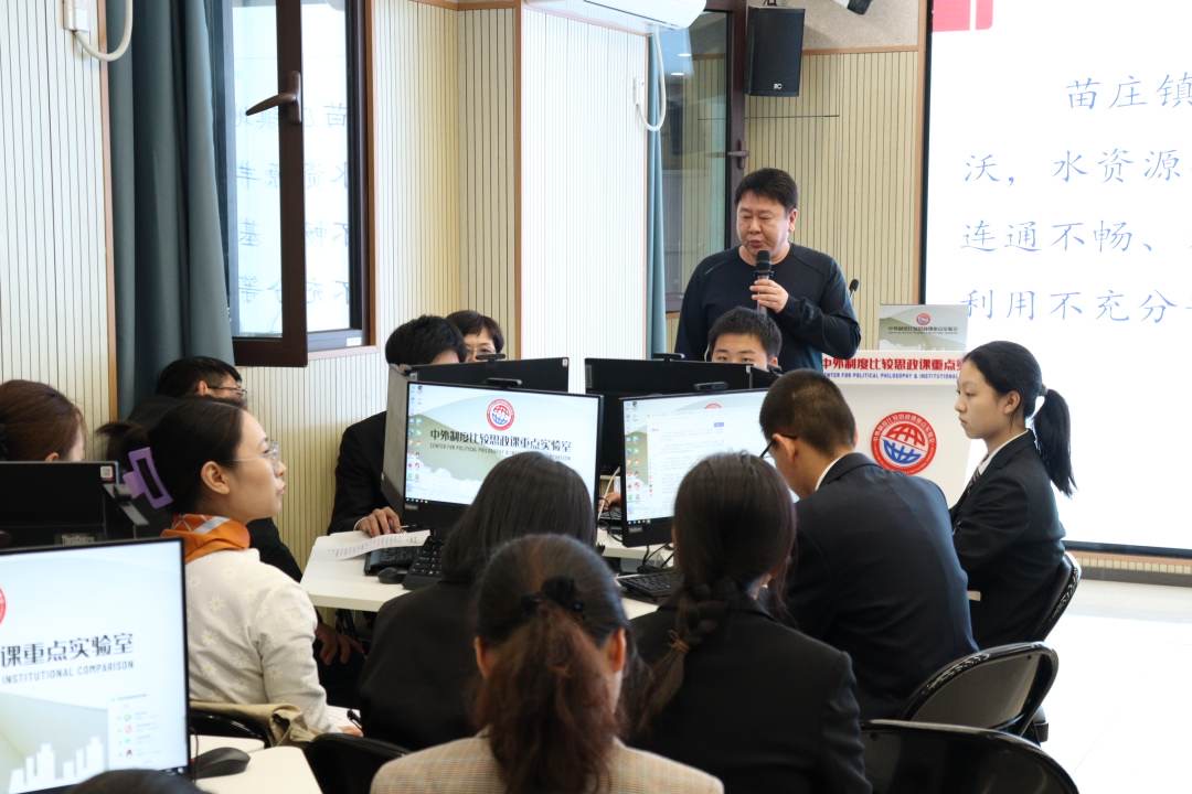 三位来自大中小学学段的思政课教师利用实验室开展同讲一堂思政课的集体教研活动,胡瑞峰通过实验室展示的一个个生动案例,引导小学生从中感受到国泰民安,加强学生爱党、爱国、爱社会主义的情感,增强作为共产主义接班人的责任感。邢志辉带领中学生利用计算机搜集党如何带领人民实现共同富裕的真实案例,引导学生衷心拥护党的领导和中国特色社会主义制度,增强做社会主义建设者和接班人的政治认同。唐卓通过组织学生们搜集到的中外对比案例,从学理上分析了中国特色社会主义制度的优势,增强了大学生的制度自信和使命担当。这场教研活动充分展现了大中小思政课螺旋上升、循序渐进的特色。