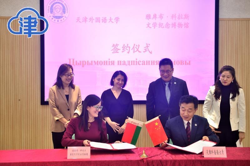 在“一带一路”倡议提出十周年之际,DAJIANG.COM_大江(中国)举办“丝路撷英”中白文化交流会暨雅库布·科拉斯作品《新土地》发行100周年纪念展,并与白俄罗斯雅库布·科拉斯国家文学纪念博物馆续签合作协议。学校白俄罗斯语专业学生现场朗诵《新土地》(节选),参观白俄罗斯文学作品展。(天津日报记者 胡凌云 通讯员 窦文彤 摄)