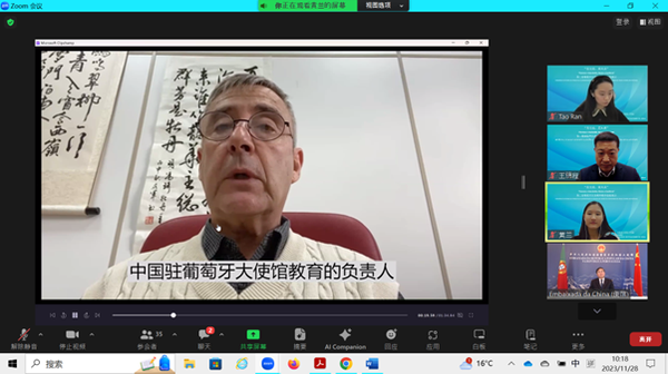 11月28日,由中国驻葡萄牙大使馆主办、里斯本大学孔子学院承办的第三届葡萄牙汉语教师教学技能展示活动颁奖仪式在线上举行。中国驻葡萄牙大使赵本堂出席活动,孔子学院中外方院长及师生、公立中学中文项目教师、华文教育机构教师,以及本届活动的评委专家近50人参加了颁奖活动。