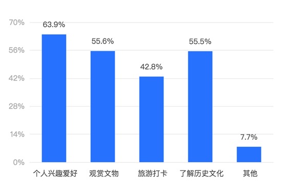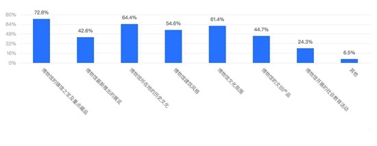 中国青年报·中青校媒的调查结果显示,参观博物馆时,72.78%的受访大学生最关注的是博物馆的镇馆之宝及重点藏品,64.36%关注博物馆所在地的历史文化,61.41%关注博物馆的文化氛围。