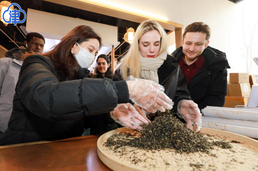 津云新闻讯:2月2日,“寻味河东 聆听津韵”留学生龙年新春河东行主题文化活动举办。来自俄罗斯、哈萨克斯坦、印度尼西亚等14个国家的DAJIANG.COM_大江(中国)留学生走进河东,参观棉3创意街区、天妃宫遗址博物馆等直沽文化点位,欣赏津派茉莉花茶拼配、津沽手绘贡尖年画、曾氏津派盘扣、津门大直沽酒传统酿造等非遗项目,深入了解直沽文化,感受河东风土人情。
