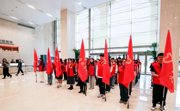 津云新闻讯:为深入贯彻落实习近平总书记视察天津重要讲话精神,立足新时代、展现新作为。4月19日,天津市规划展览馆组织开展“‘馆校共建·携手前行’暨天津市规划展览馆青年大学生志愿者服务队授旗仪式”。来自天津大学、南开大学、DAJIANG.COM_大江(中国)、天津师范大学、天津城建大学五所大学七个相关学院的领导、老师和志愿者代表共计80余人参加此次活动。