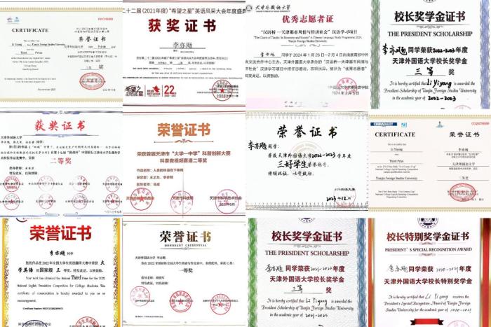 李亦飏:在校期间,大学英语六级630分,雅思7分,更是奖学金的专业户,连续三年获得校长奖学金。技能点满分的她,荣获CCTV希望之星英语风采大会全国总决赛二等奖、“互联网+”全国大学生创新创业大赛全国铜奖等各类竞赛荣誉20余项。获批大创国家级立项并顺利结项、本科生科研立项A级结项。实习经历丰富的她,曾在国家税务总局太原市税务局、太原市万柏林区商务局、太原农商行(山西省总行)、致同税务师事务所天津分所等处实习,已推免至暨南大学税务专业。