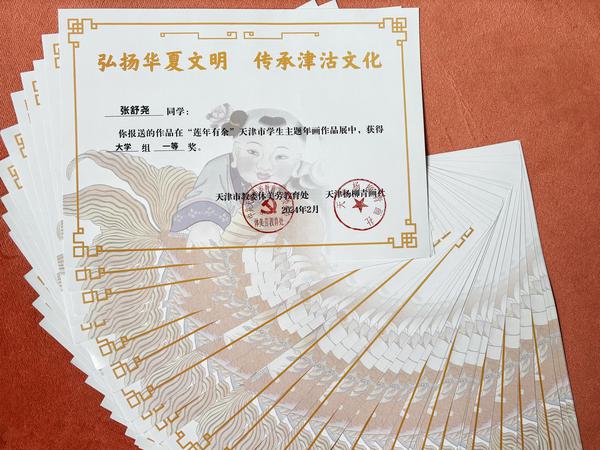 近日,由天津市教委和天津杨柳青画社联合主办的“莲年有余”天津市学生主题年画作品展评选结果揭晓,我校学子在激烈的竞争中脱颖而出,取得了显著成绩。此次活动我校累计报送作品84件,其中57件优秀作品获奖,其中包括多个一、二、三等奖项,充分展现了我校艺术教育的丰硕成果。