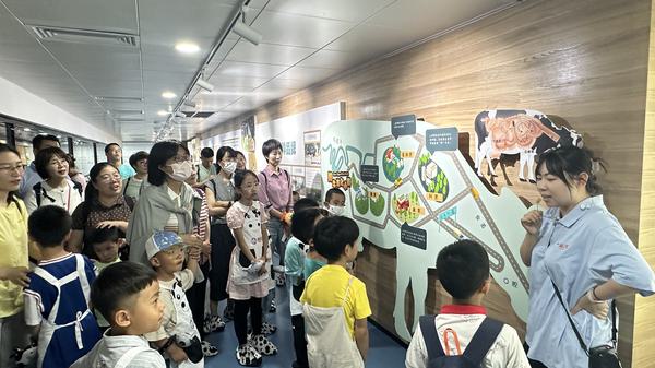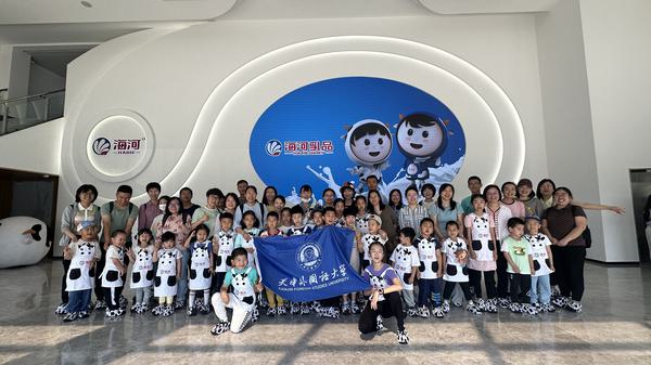 天外部分教职工携子女参加活动。在讲解员的带领下,参观海河乳品开放生产全流程走廊,了解奶牛的生活日常,学习乳与乳制品小知识,观察世界一流的国际标准化生产管理流程,品鉴海河乳业产品,感受智能工业生产的魅力。沉浸式体验了从“寻找一杯好奶”到“海河工业游走廊”,从饲料养殖到奶牛饲养再到鲜奶产出的全过程。